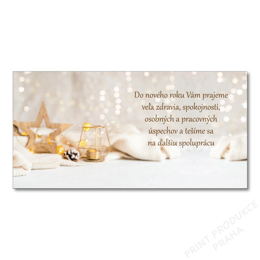 PF 2026 - karta s textem - Rozměr: 20 x 10 cm - Minimální objednací množství: 20 ks - Obsahuje text s přáním. - papír 350g/M2 - Součástí balení je také obálka. - - Nabízíme také možnost potisku novoročenky logem Vaší firmy, který je již zahrnut v ceně. - Vaše logo tak na novoročenky natiskneme zcela ZDARMA! - - Do 249 ks včetně si však účtujeme jednorázový poplatek za graf. práce a úpravy. - Odhadovaná cena prací je v rozmezí 200-500,- Kč dle náročnosti graf. úprav. - Od 250 ks jsou grafické práce až do počtu třech návrhů také zcela ZDARMA!