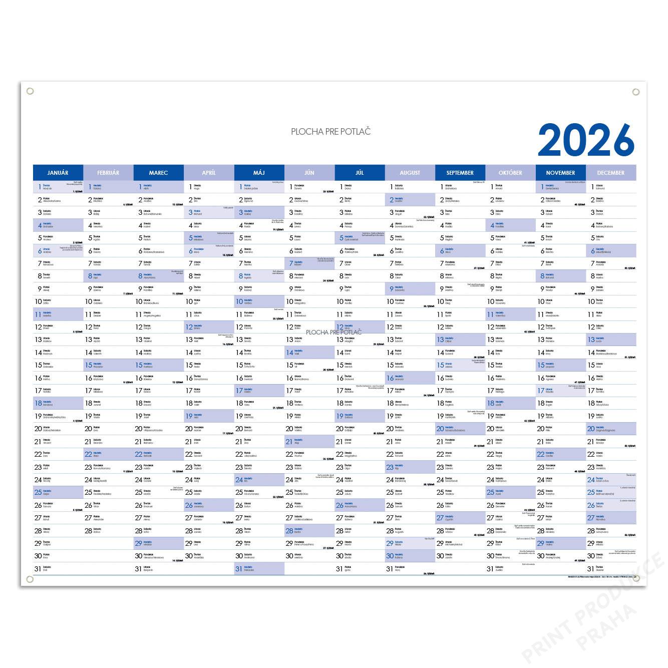 Rozměr: 124 x 100 cm - Barva: modrá - Materiál: omyvatelné PVC - banerovina - Kalendárium: slovenské roční jmenné - Rozsah: 1 list - Na tento kalendář poskytujeme zdarma potisk loga. (od 10ks)