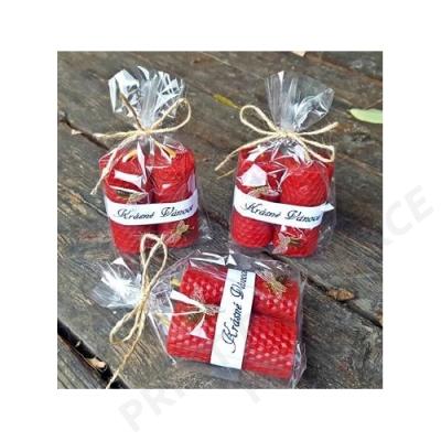 2 ks, stáčené ze plátů včelího vosku, přizdobené textem a dvěma včelkami